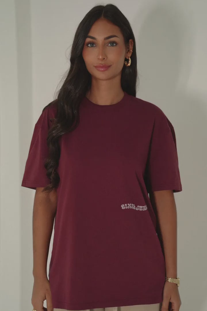 Jungle Flower Sixth June Print ss Tshirt 12977-BURG