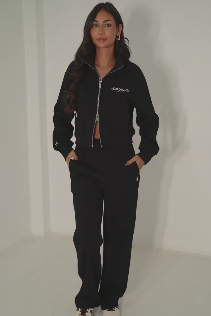 Never Stop Dreaming Sixth June Back Embroidery Zip Up Sweatshirt 34613-BLAC