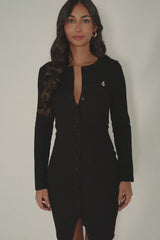 Sixth June Heart Embroidered Button Up ls Ribbed Dress 34644-BLAC
