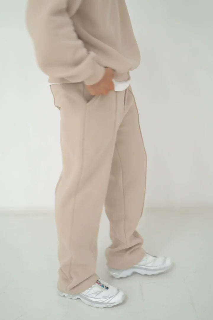 Top-stitched seams at the front and back, front pockets, elastic waistband with internal drawstring, fleece.