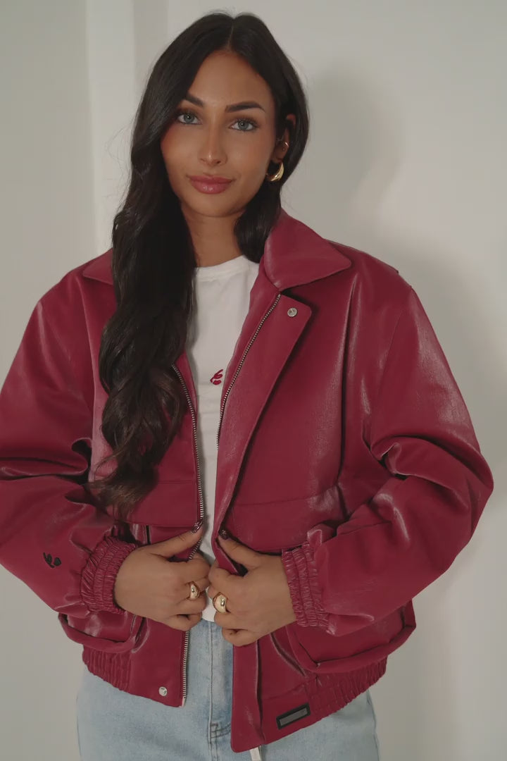 Sixth June Vegan Leather Varsity Jacket 34623-BURG
